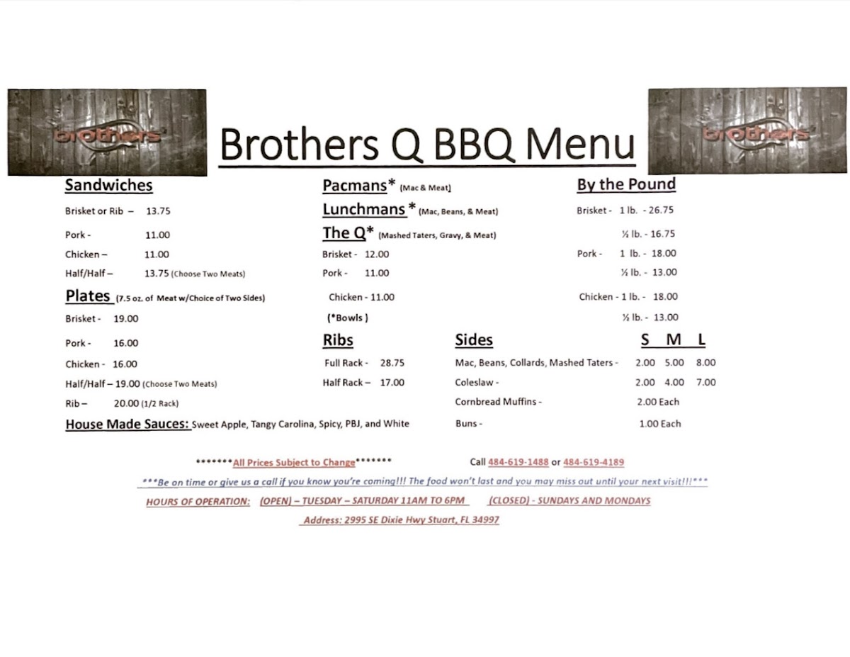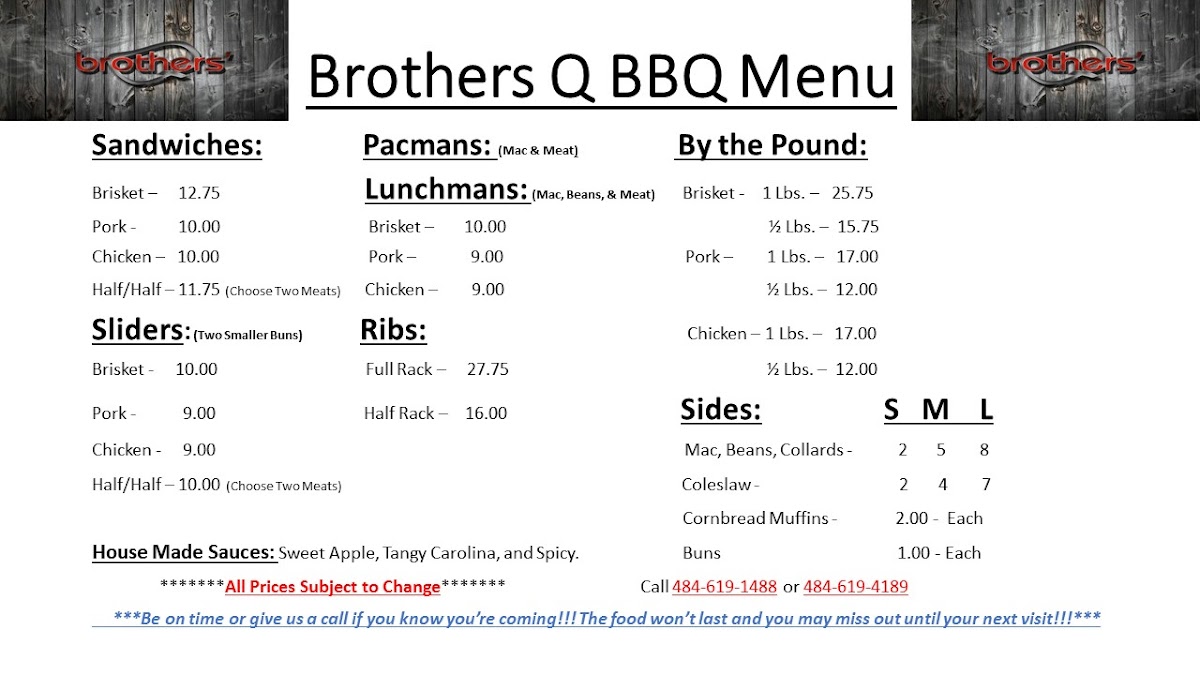 Brothers' Q BBQ Menu